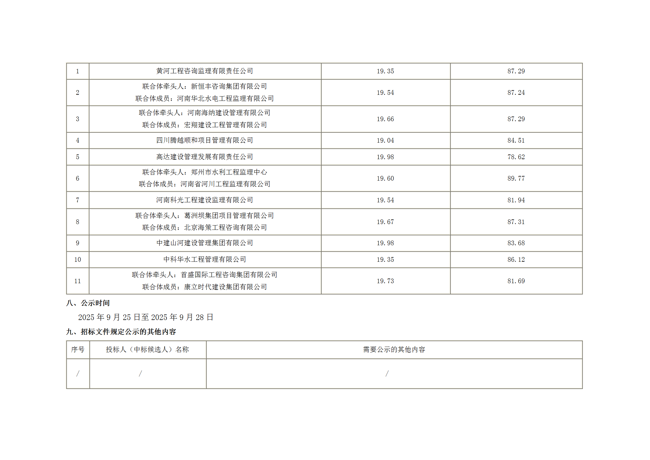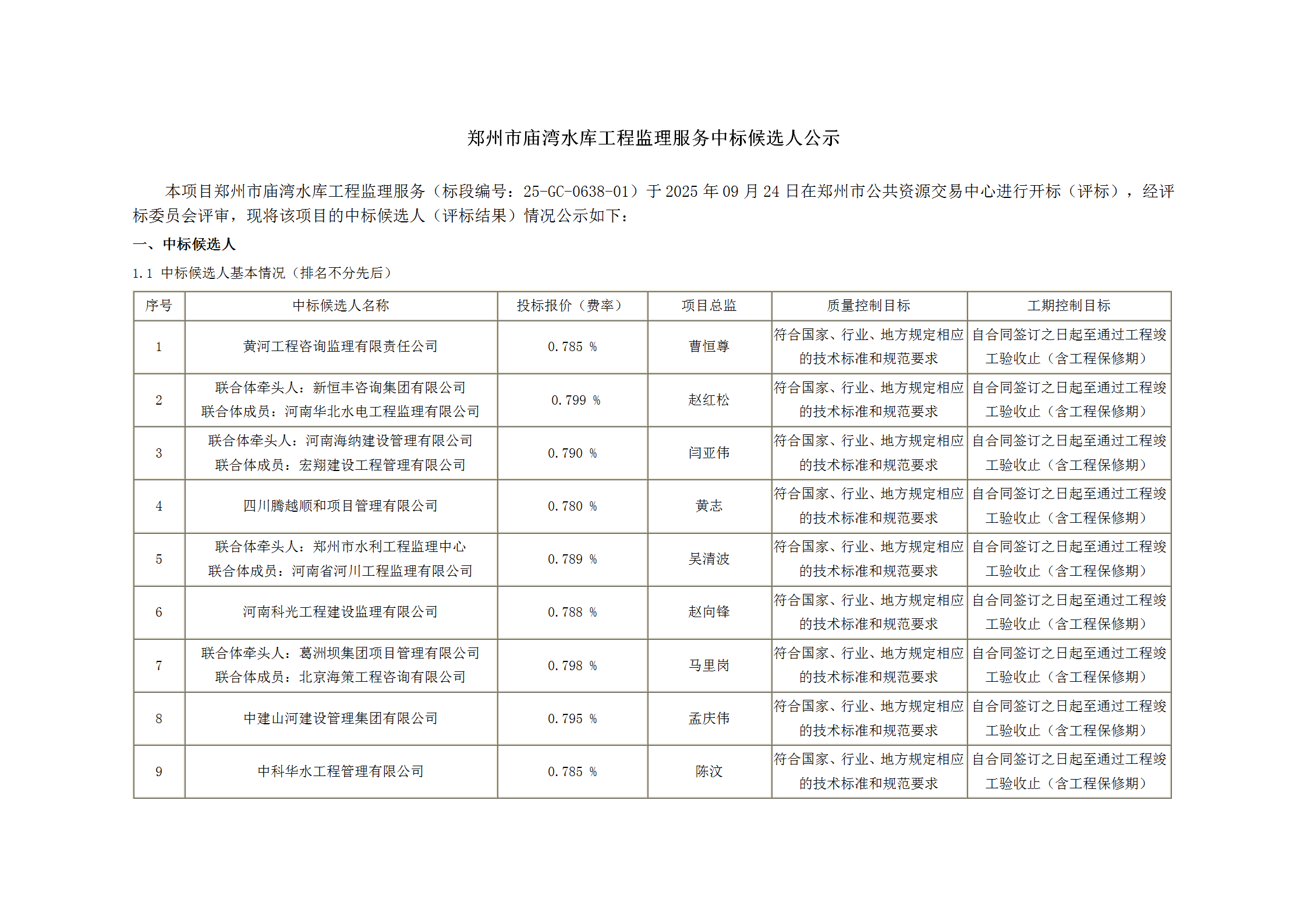 鄭州市廟灣水庫工程監(jiān)理服務(wù)中標(biāo)候選人公示