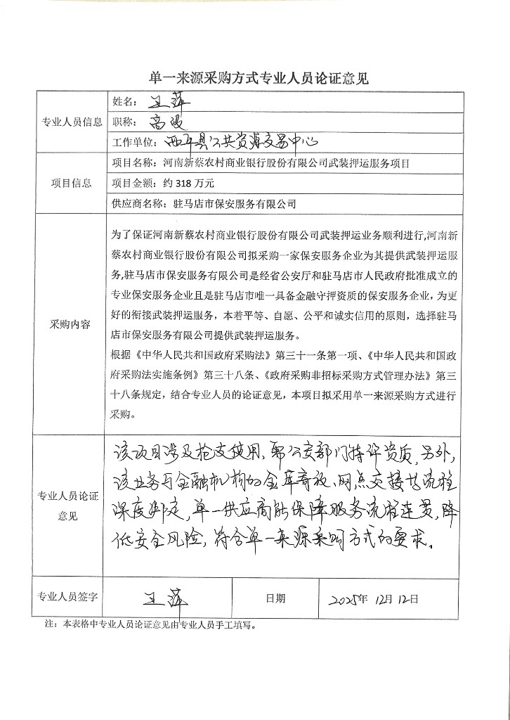 為了保證河南新蔡農(nóng)村商業(yè)銀行股份有限公司武裝押運(yùn)業(yè)務(wù)順利進(jìn)行,河南新蔡農(nóng)村商業(yè)銀行股份有限公司擬采購(gòu)一家保安服務(wù)企業(yè)為其提供武裝押運(yùn)服務(wù),駐馬店市保安服務(wù)有限公司是經(jīng)省公安廳和駐馬店市人民政府批準(zhǔn)成立的專(zhuān)業(yè)保安服務(wù)企業(yè)且是駐馬店市唯一具備金融守押資質(zhì)的保安服務(wù)企業(yè),為更好的銜接武裝押運(yùn)服務(wù),本著平等、自愿、公平和誠(chéng)實(shí)信用的原則,選擇駐馬店市保安服務(wù)有限公司提供武裝押運(yùn)服務(wù)。