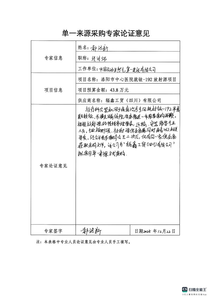 4.單一來(lái)源原因及相關(guān)說(shuō)明:經(jīng)公開(kāi)發(fā)布采購(gòu)公告二次后,僅有一家供應(yīng)商獲取采購(gòu)文件,該公司為“輻鑫工貿(mào)(四川)有限公司”擬采用單一來(lái)源方式采購(gòu)。